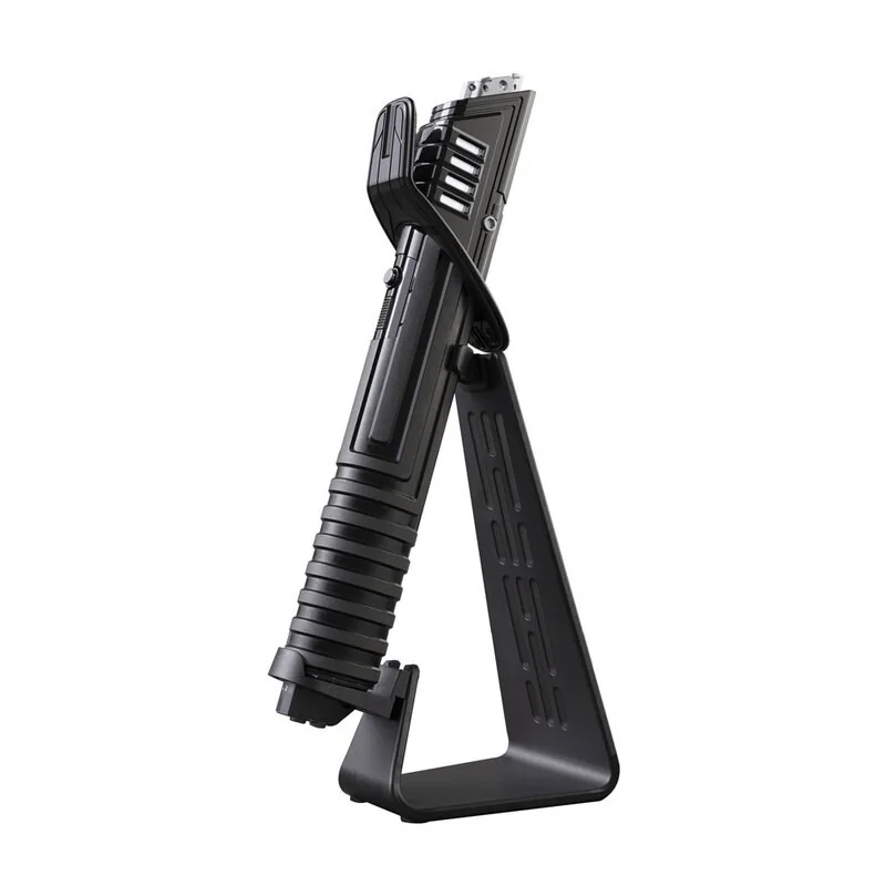Une arme unique avec une lame d’énergie noire bordée d’une lumière blanche crépitante.