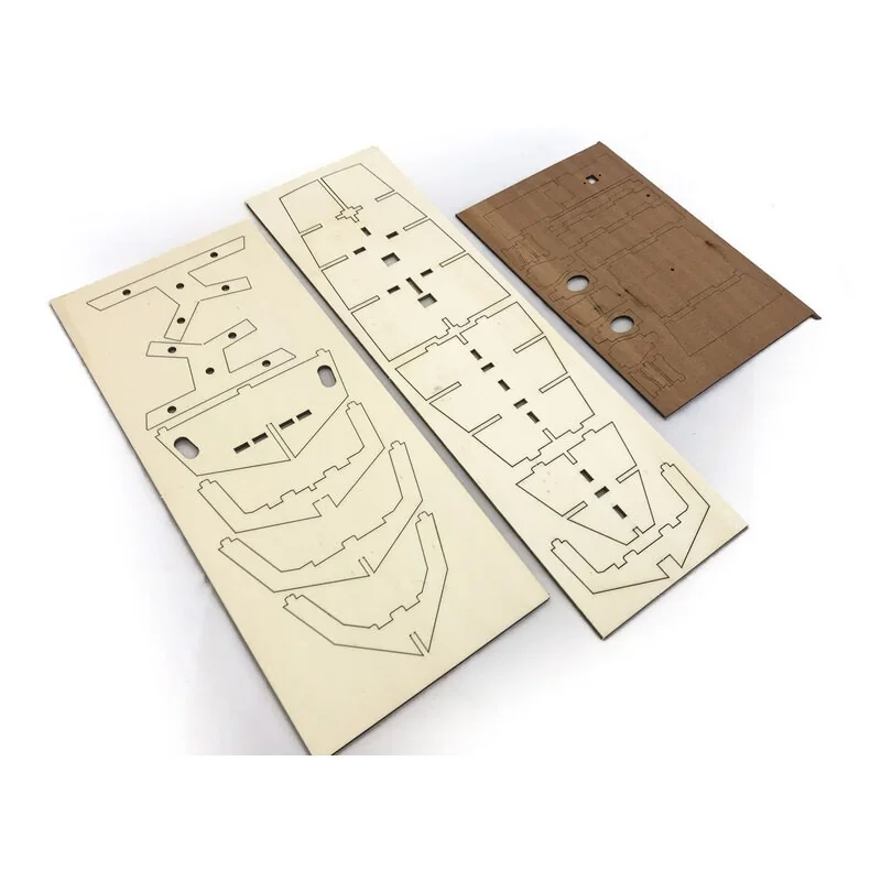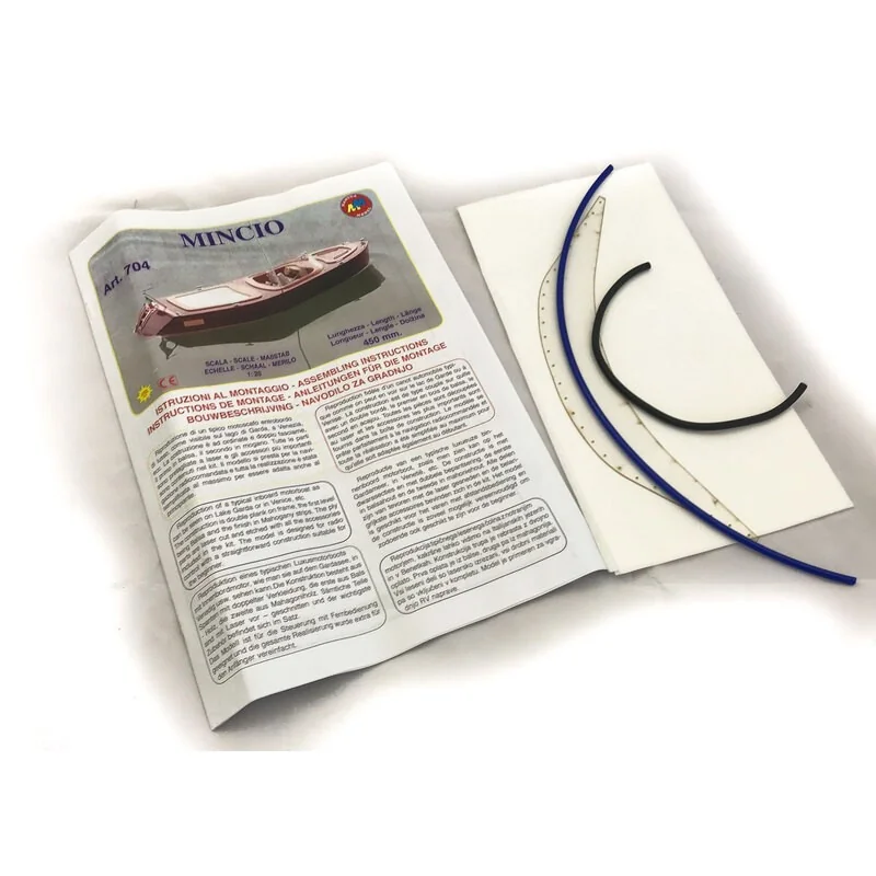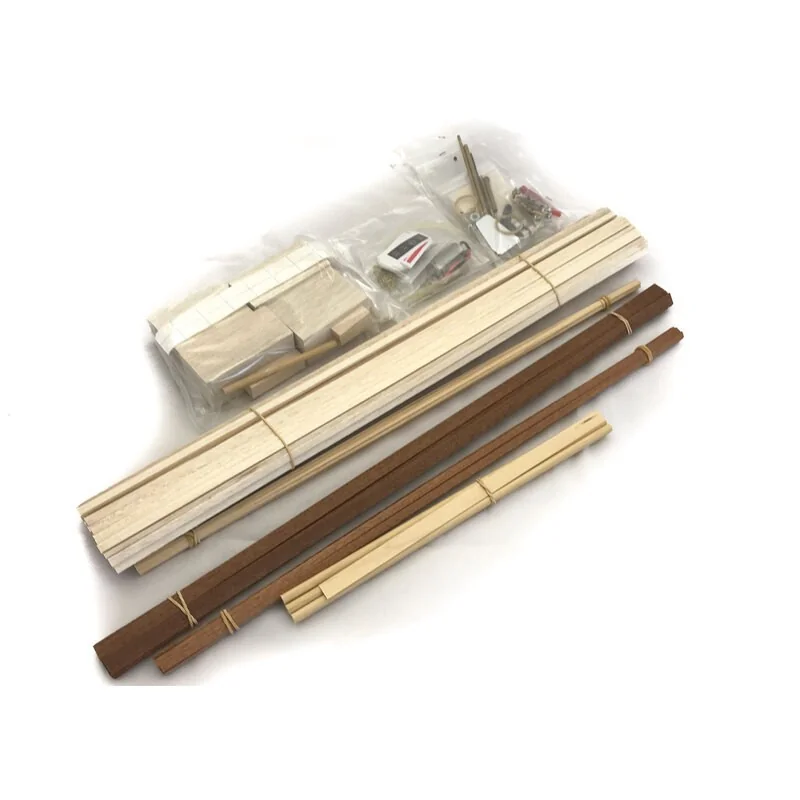 Prévu d’origine pour pouvoir être radiocommandé, la boîte contient toutes les pièces découpées au laser, les accastillages et le moteur électrique.