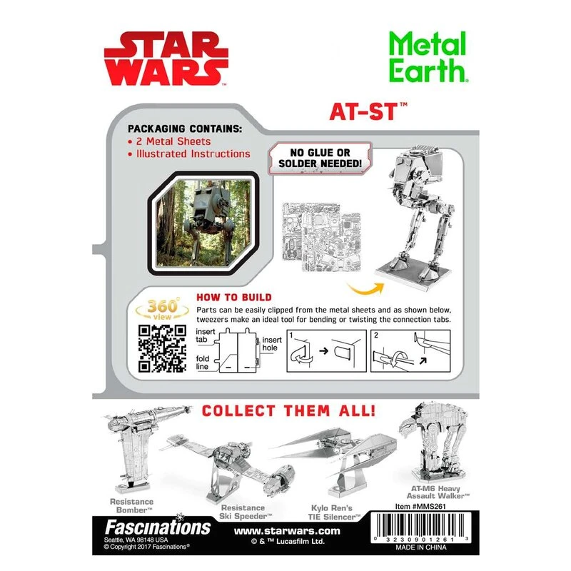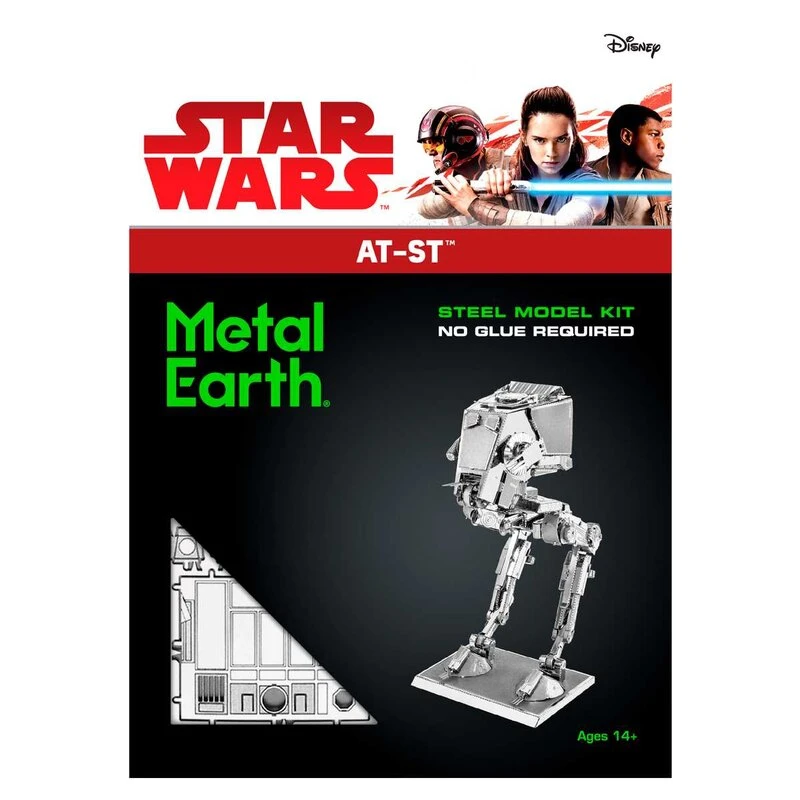 MetalEarth: STAR WARS AT-ST 8.89×5.08×4.44cm, maquette 3D en métal avec 2 feuilles, sur carte 12x17cm, 14+