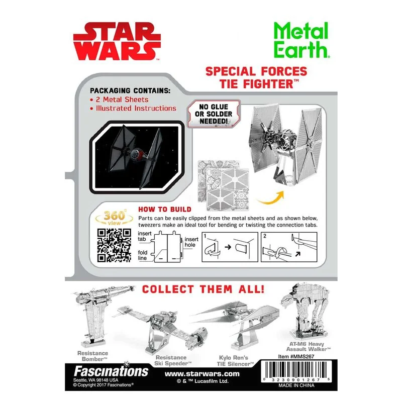 MetalEarth: STAR WARS (EP7) SPECIAL FORCES TIE FIGHTER 5.72×5.08×8.89cm, maquette 3D en métal avec 2 feuilles, sur carte 12x17cm, 14+