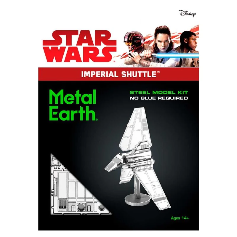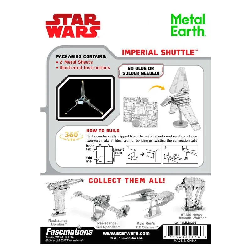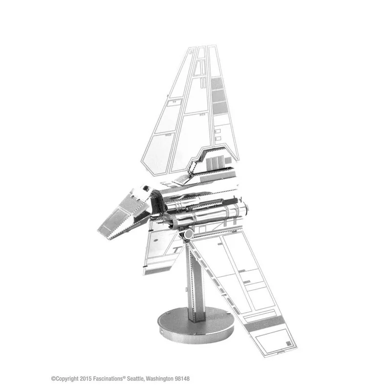 MetalEarth: STAR WARS IMPERIAL SHUTTLE 10.8×6.35×10.16cm, maquette 3D en métal avec 2 feuilles, sur carte 12x17cm, 14+