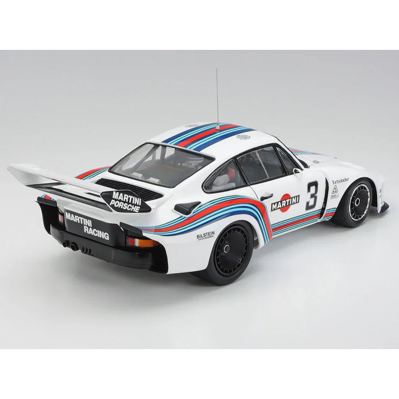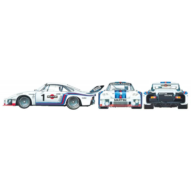 Réédition du kit initialement sorti en 1977 sous la réf.20005 et réédité une première fois en 1999. Cette fois, le kit comporte de nouveaux decals Cartograf et de nouveaux pneus slick en caoutchouc synthétique. La Porsche 935 Martini était une voiture du Groupe 5 développée pour le championnat du monde des constructeurs 1976. Basée sur la Porsche 911 Turbo (930), elle avait une carrosserie considérablement modifiée. Si la silhouette de la 911 était conservée, des ailes surdimensionnées et un aileron arrière agrandi lui donnaient une apparence massive et musculeuse. La suspension et les freins ont également été améliorés. Propulsée par un moteur turbo à 6 cylindres opposés horizontalement de 2.857cm3, cette voiture a remporté quatre victoires en sept courses et a permis à Porsche de remporter le titre.