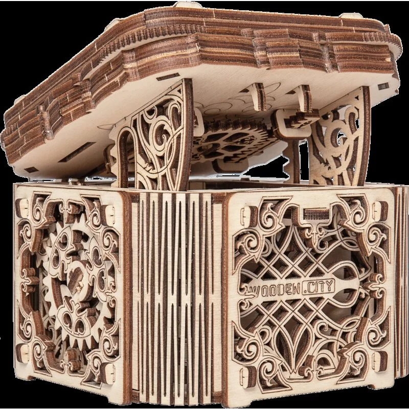 La Mystery Box de Wooden City est la reproduction d’une boîte ancienne tirée de la légende du Cinquième élément. Il s’agit en réalité d’une boîte à secret à déverrouiller. Elle peut également faire office de boîte à bijoux ou tout simplement d’élément décoratif. Le couvercle s’ouvre avec une clé qui relie des triangles. Pour ouvrir cette boîte, il faut faire preuve d’un grand sens de l’observation et utiliser une logique mécanique.